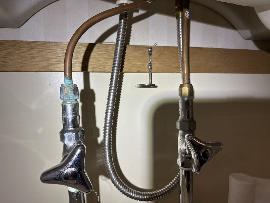 洗面台下のシャワーホースから水漏れしていました。