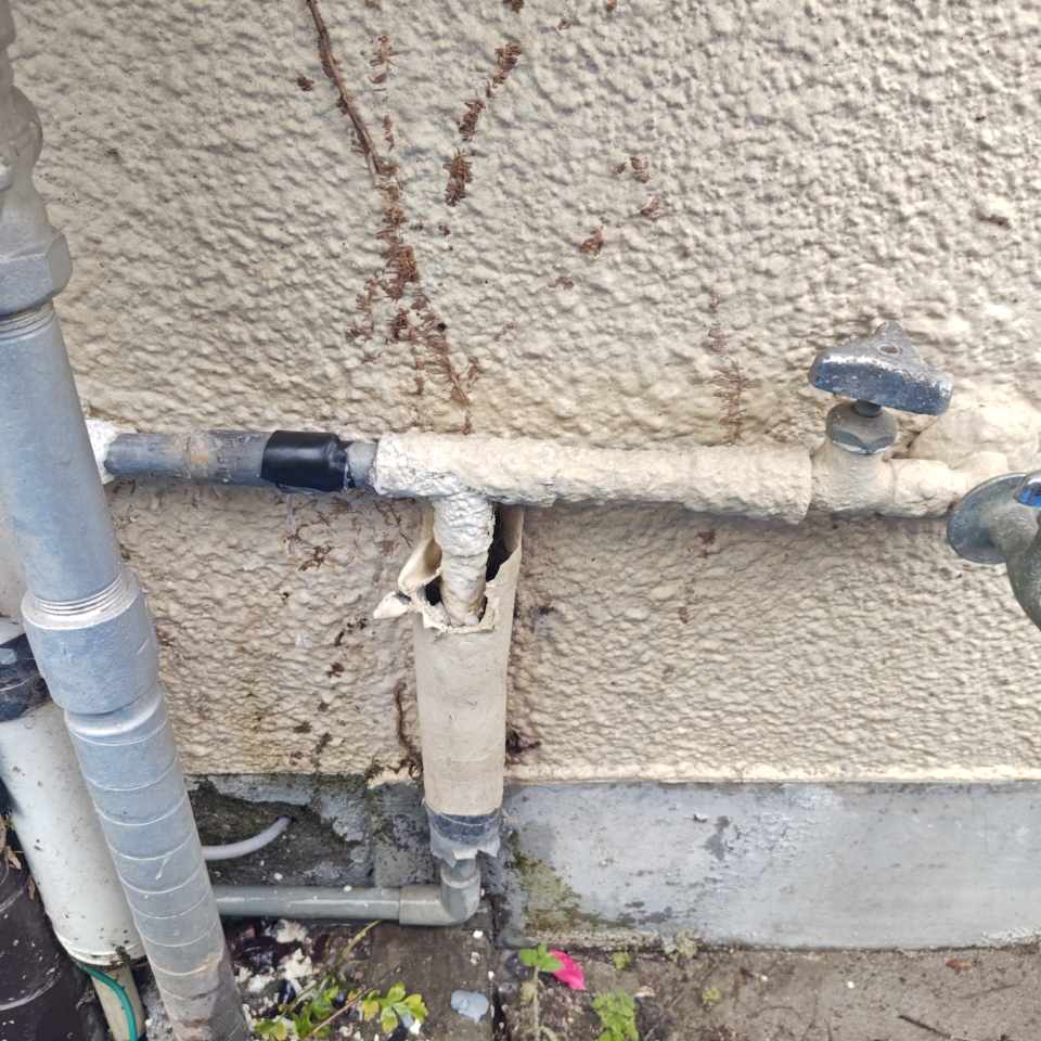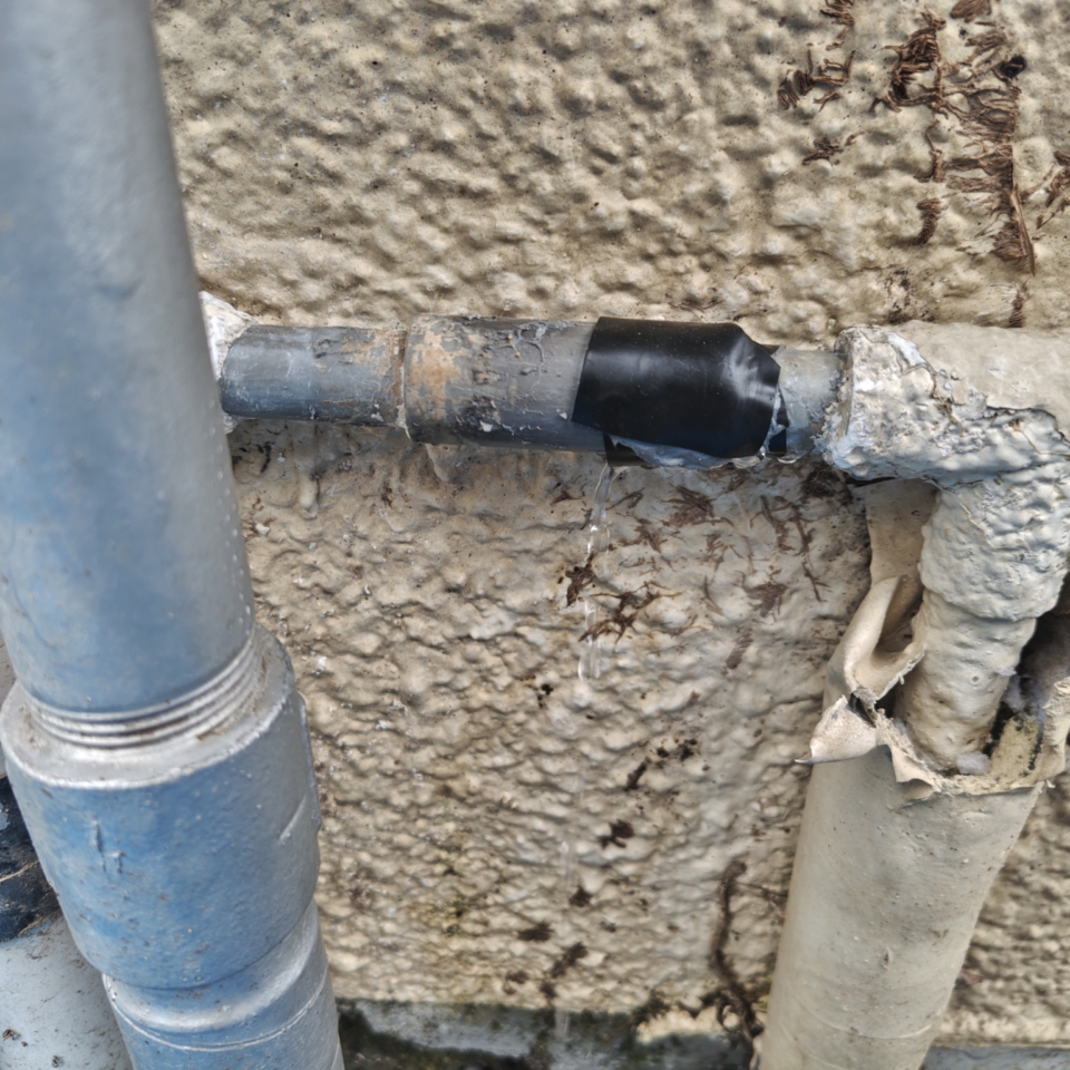 こちらはお客様でテープを巻いたりと水を止めようとしたみたいですが止まらず
