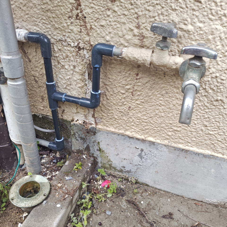 広島市東区中山新町のお客様から屋外の蛇口につながる水道管から水が漏れているので見てほしいと